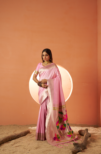 Step into timeless elegance with our “Floral Glint” Pastel Silk Sarees – a symphony of delicate hues, shimmering zari, and bold floral artistry. These sarees combine minimalist charm with statement style, thanks to their soft pastel body and the vivid oversized hand-painted-style pallu design.