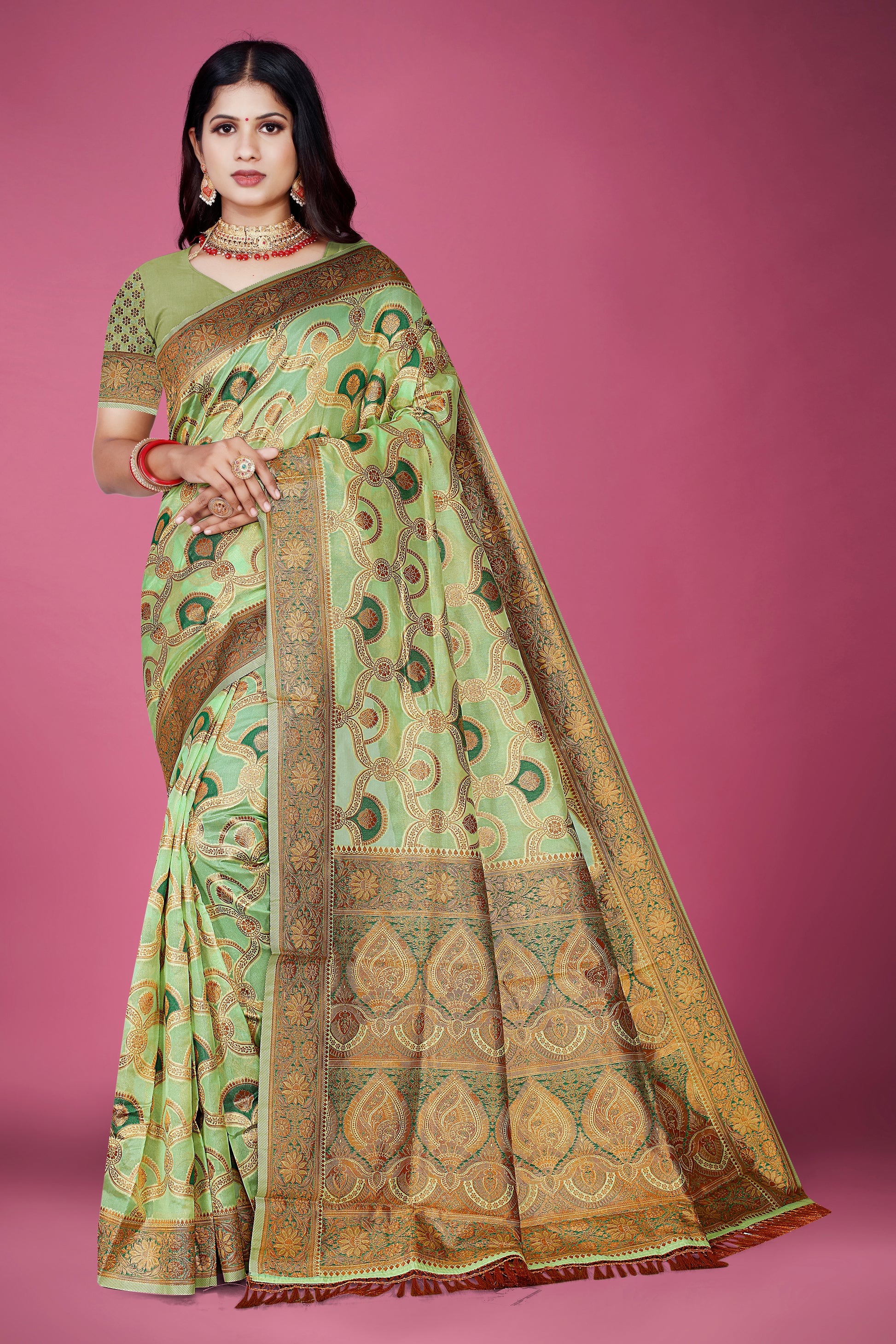 Each piece is woven with precision and passion, ensuring you shine effortlessly in every celebration. With their gleaming golden borders and classic drape, these sarees redefine ethnic elegance.